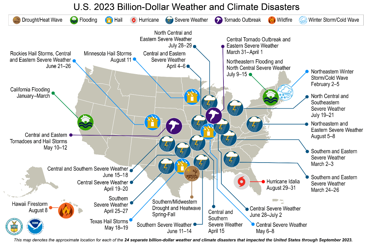 This unsettling news comes in the backdrop of the United States experiencing 372 separate weather and climate disasters since 1980, all of which incurred damages or costs exceeding $1 billion when adjusted for inflation to 2023.