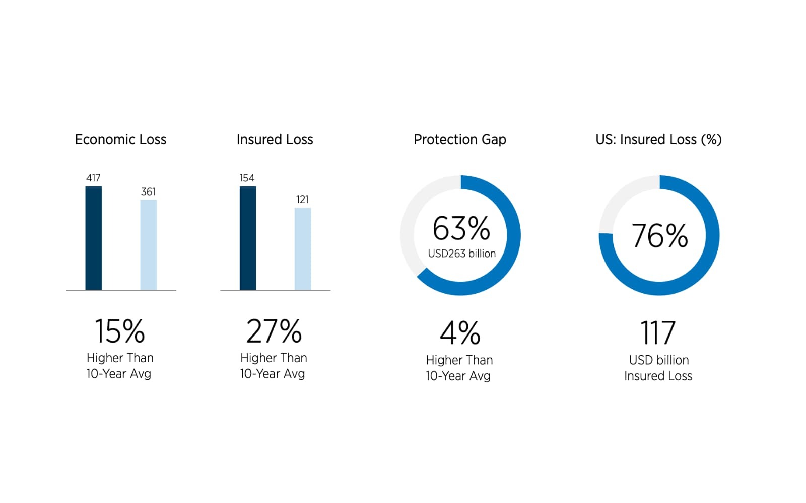The private insurance market, alongside public insurance entities, reportedly covered $154 billion of this total, meaning the protection gap stood at 63%, or $263 billion.