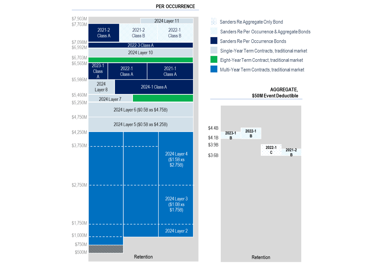 The Nationwide Program includes occurrence coverage in contracts from both the traditional reinsurance and ILS markets, while annual aggregate protection is included in six contracts supported by the ILS market.